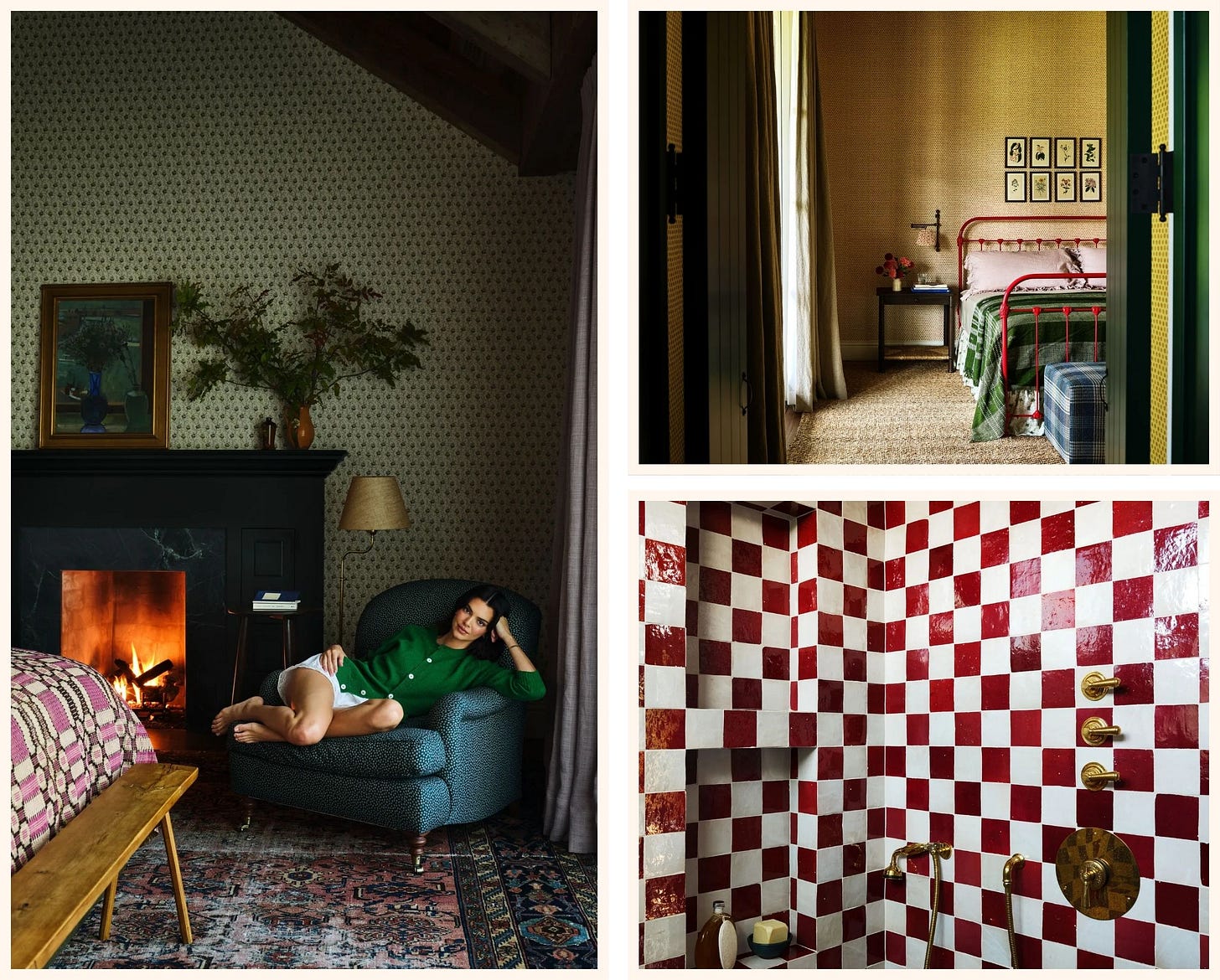 Kendall Jenner has the right idea at her mountain house, a house I am drawing endless inspiration from. The brilliant Heidi Caillier designed it and I’m infatuated. The checkerboard shower. The textured walls. That oxblood paint on the bathroom walls. The color! The pattern! It feels so original and livable and utterly gorgeous.